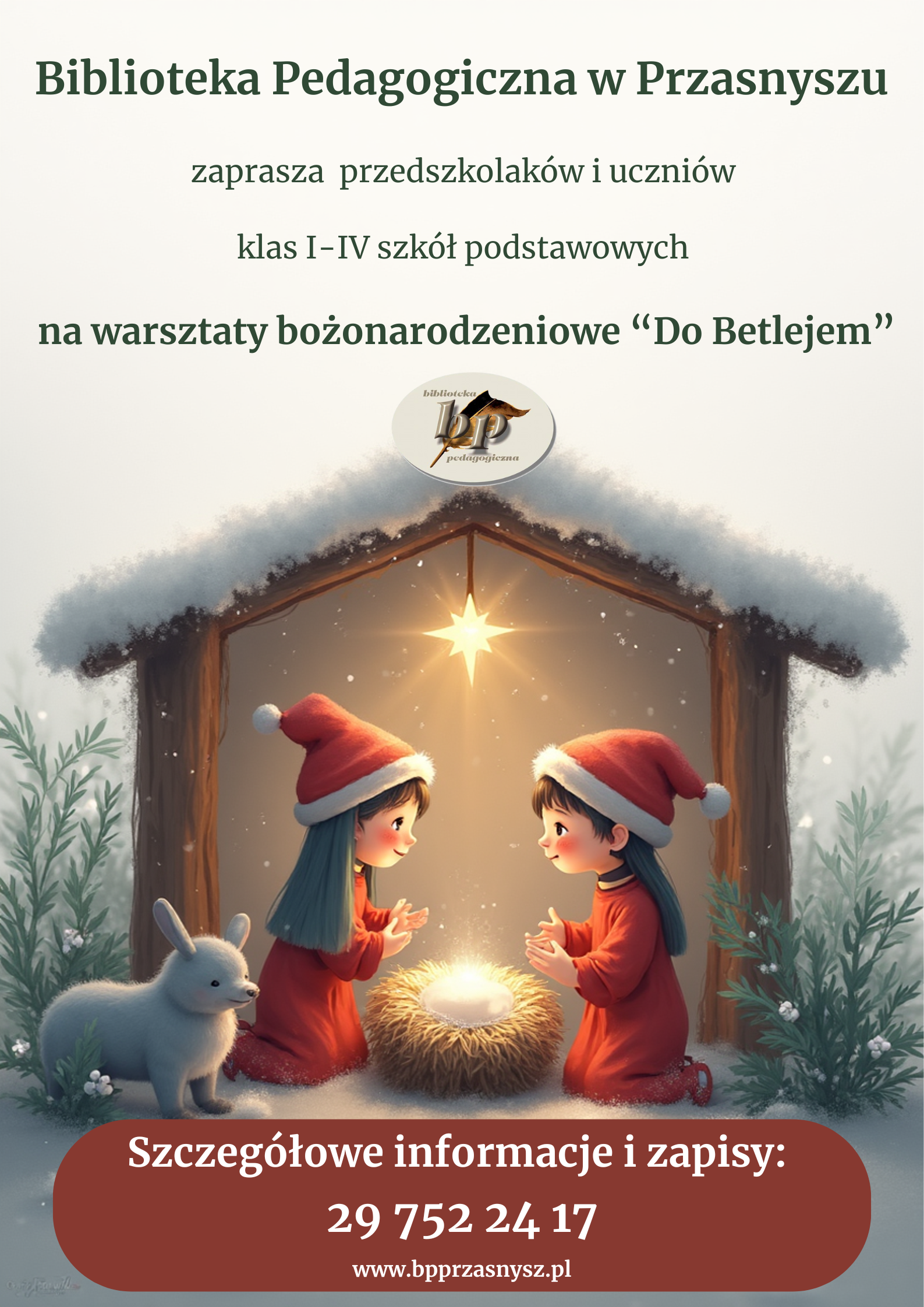 Zapraszamy do zapisów na warsztaty bożonarodzeniowe do Biblioteki Pedagogicznej w Przasnyszu. Szczegółowe informacje na plakacie oraz pod nr tel. 29 752 24 17.